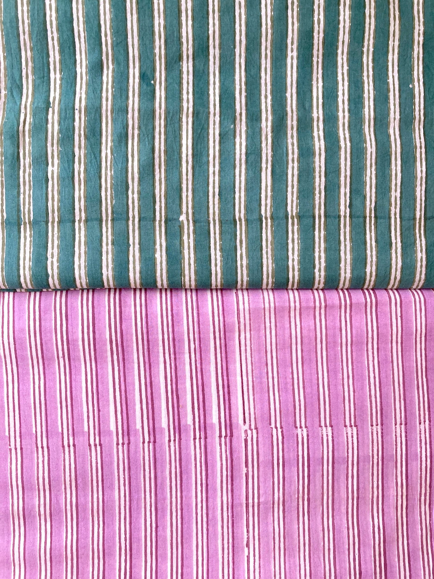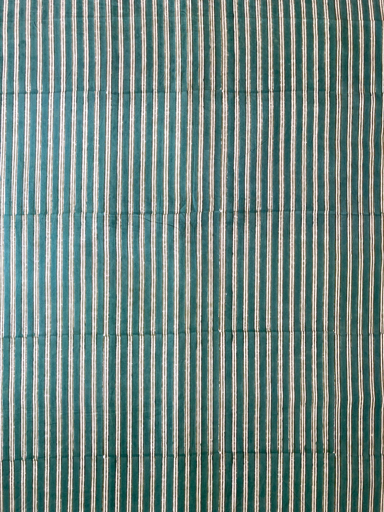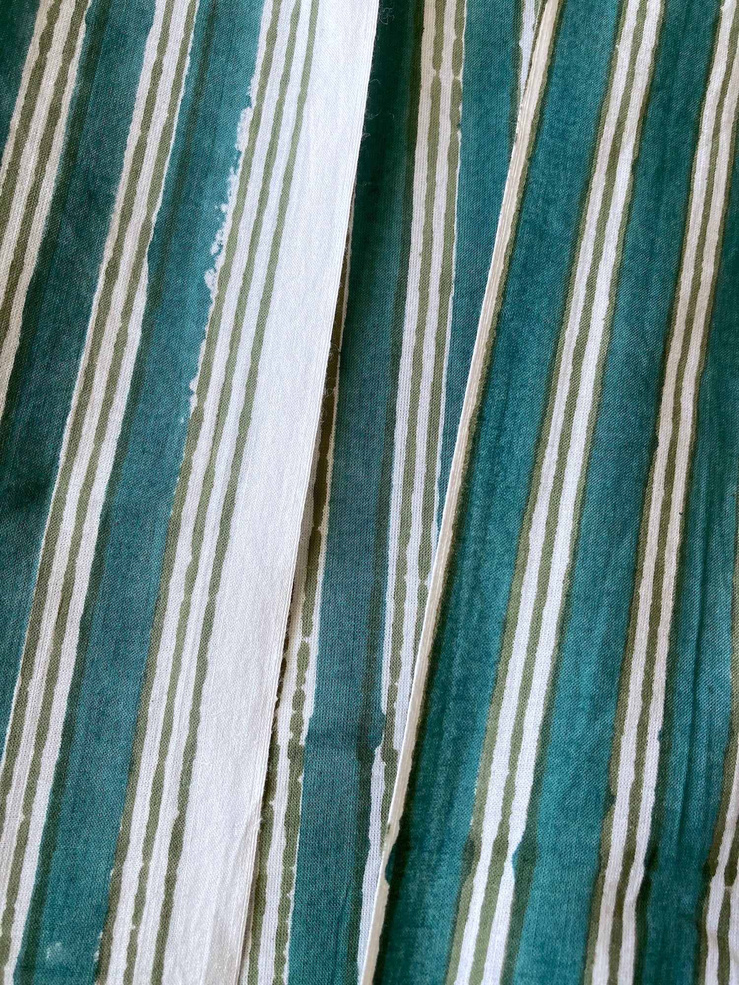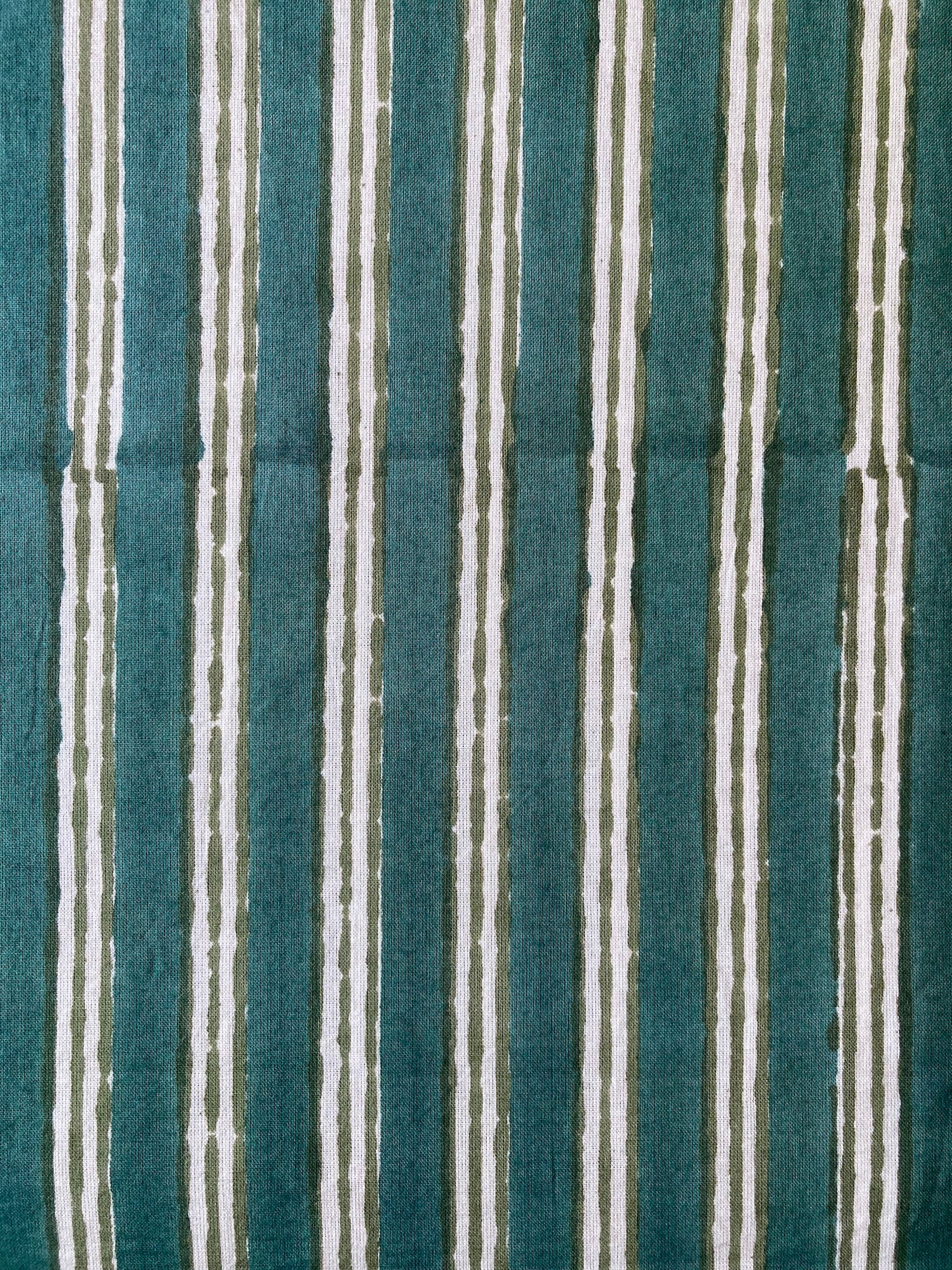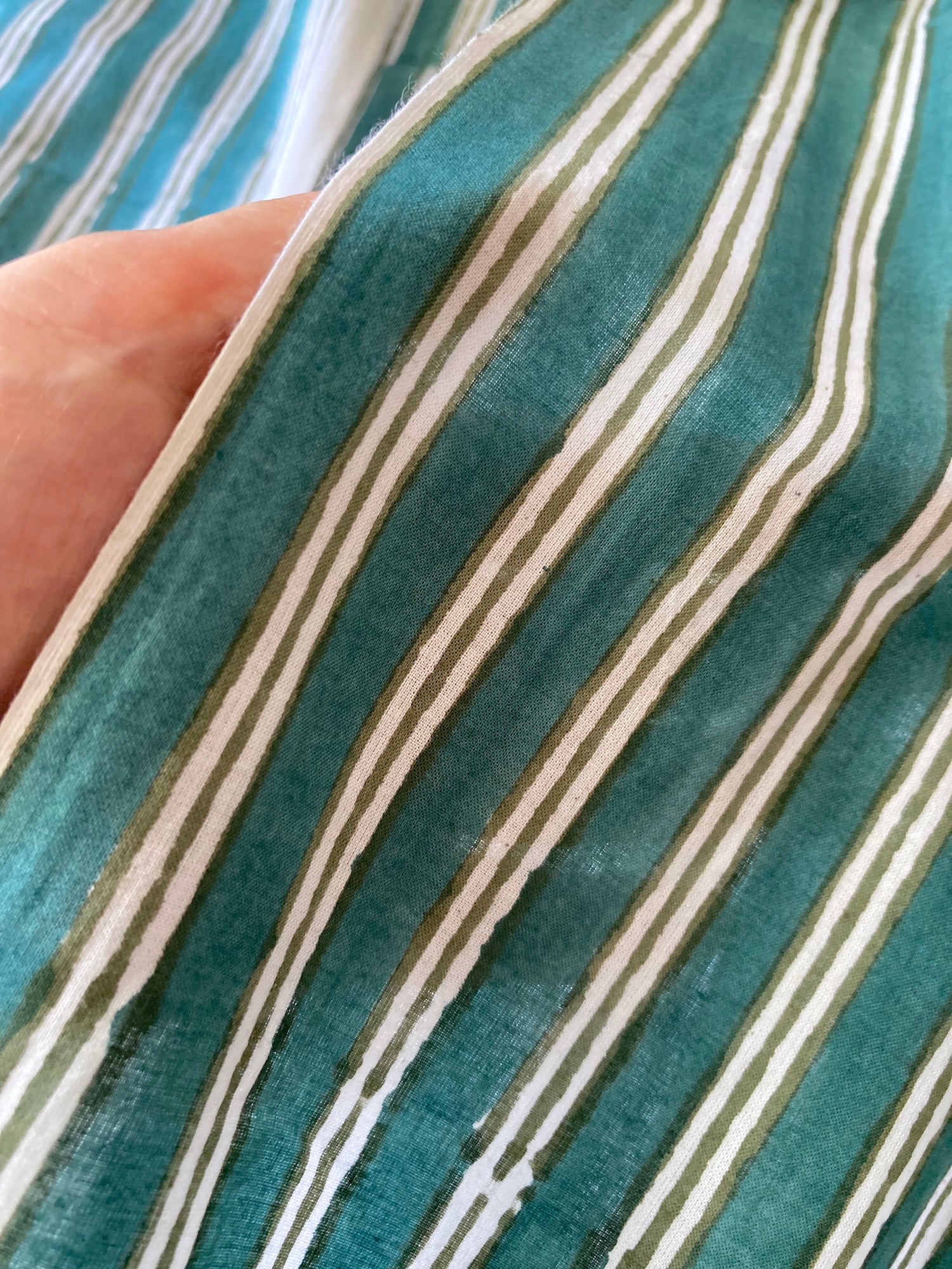 ハンドブロックプリント フォレストグリーンストライプ コットン生地 #273-9
