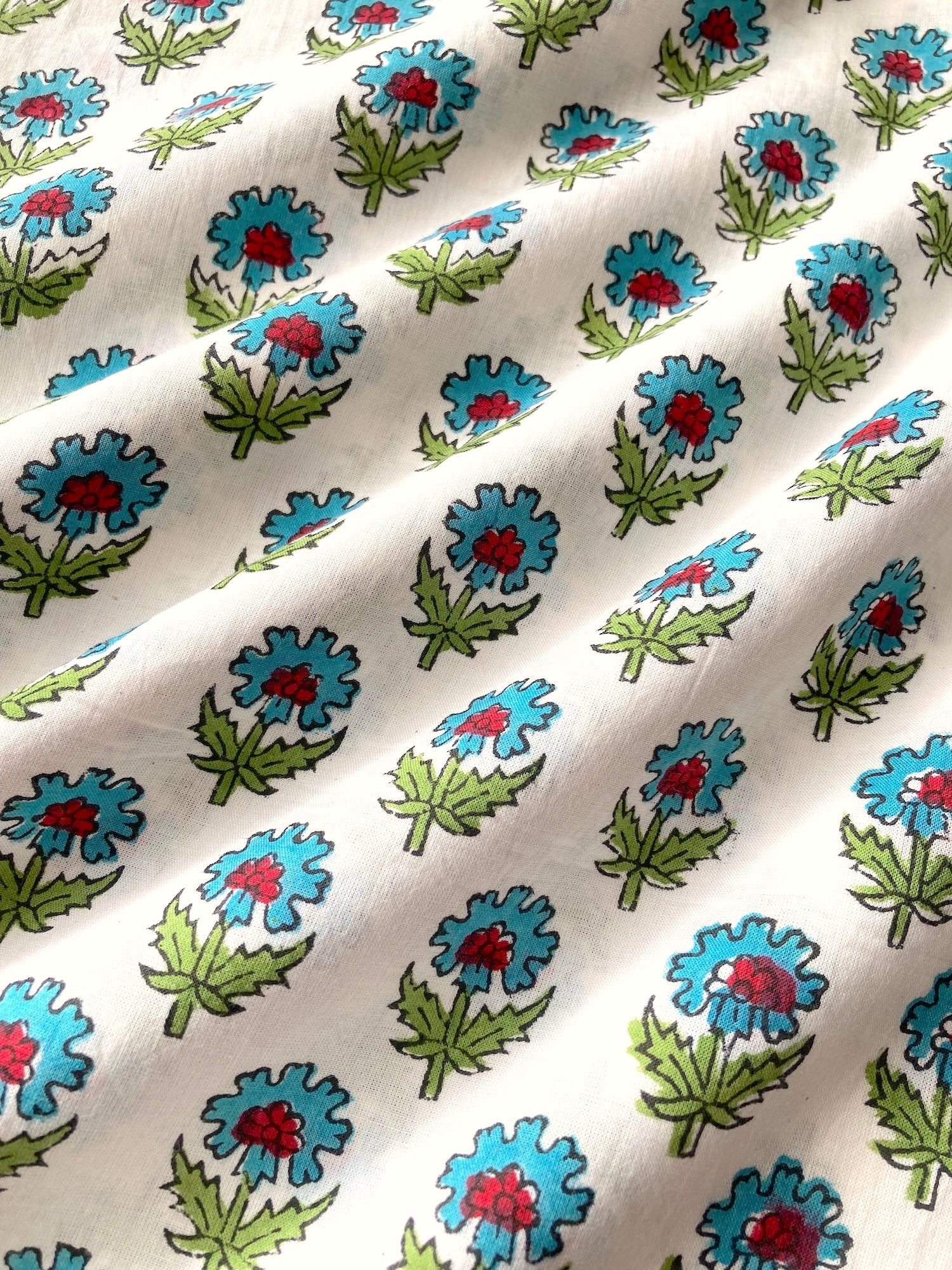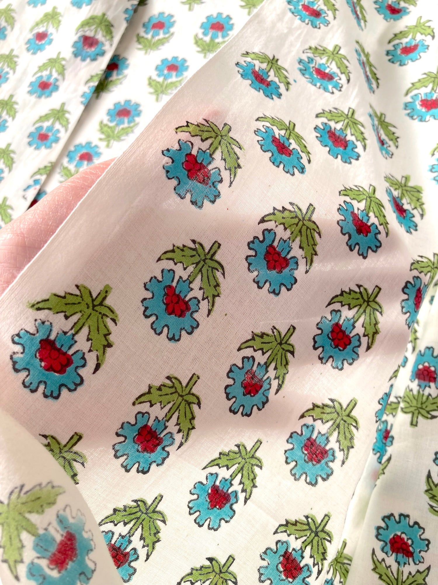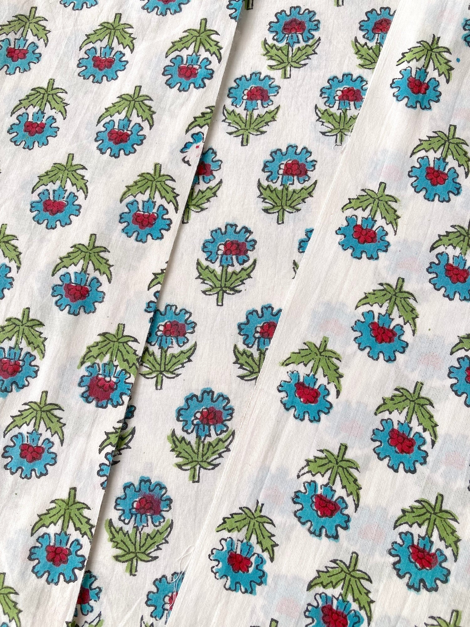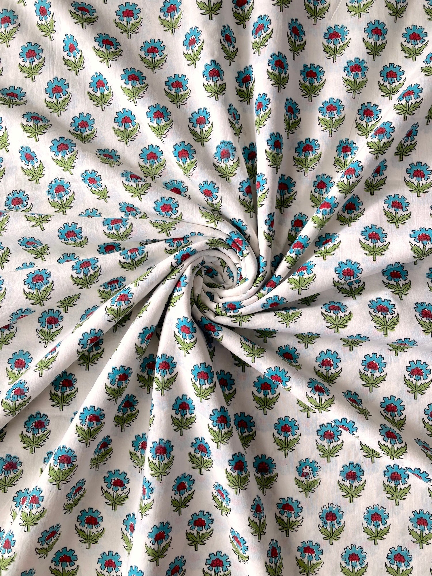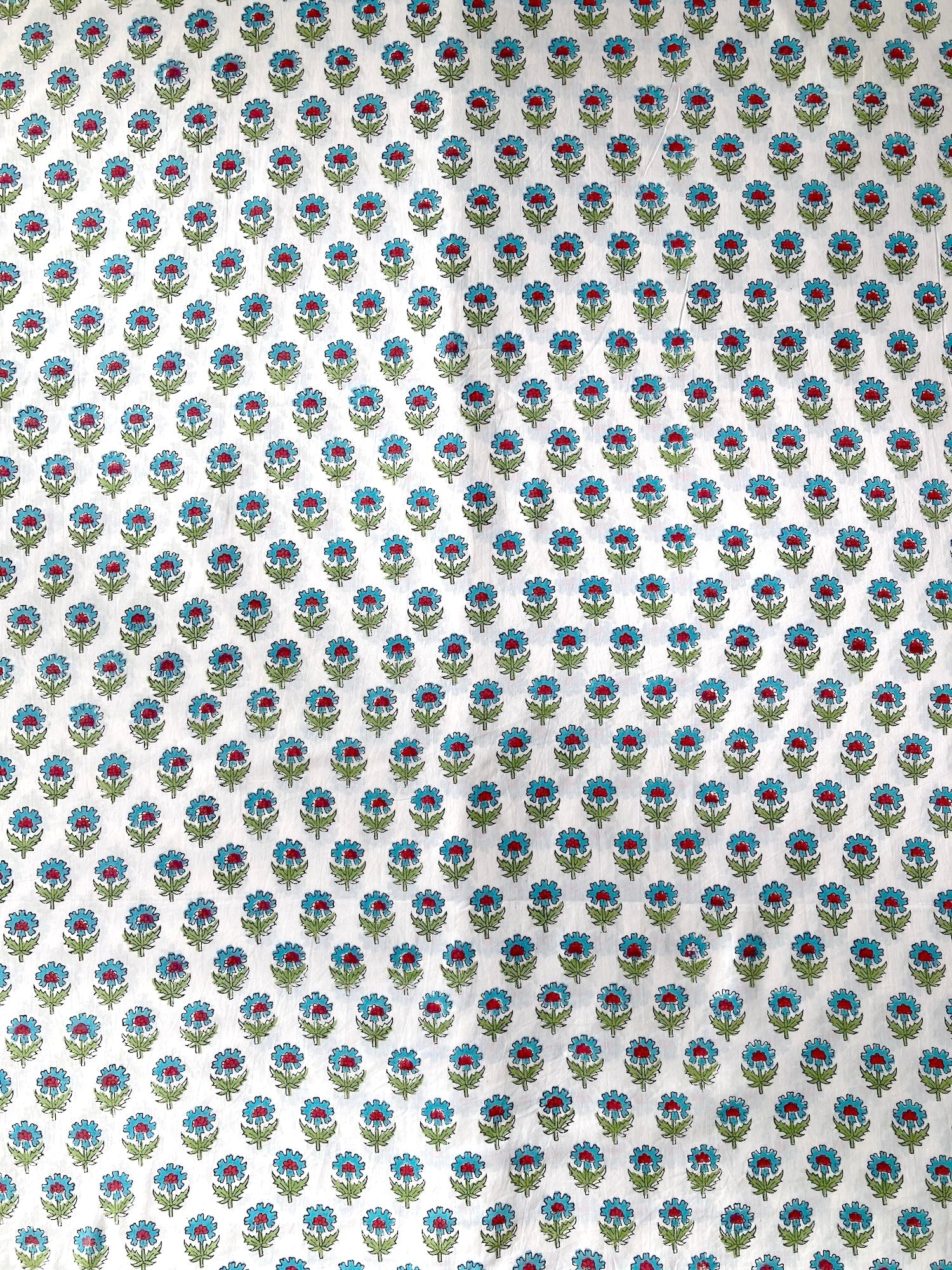 ハンドブロックプリント ホワイト 小花柄 コットンプリント生地 #294-11