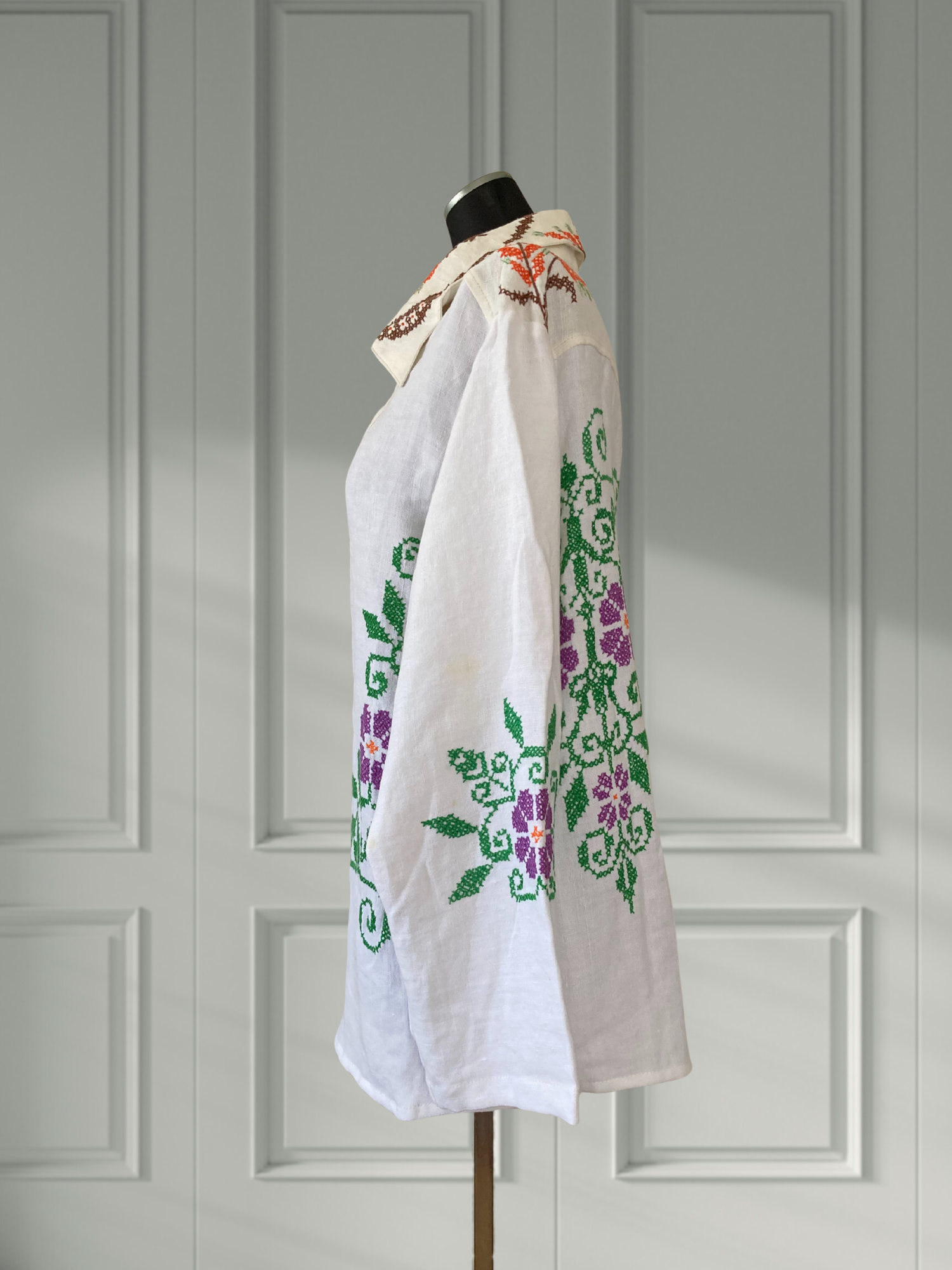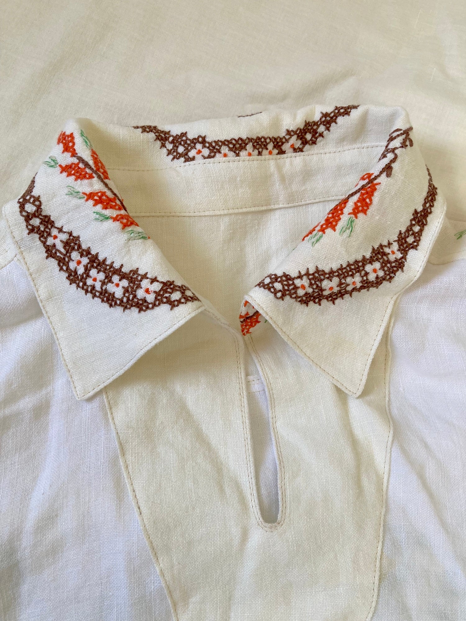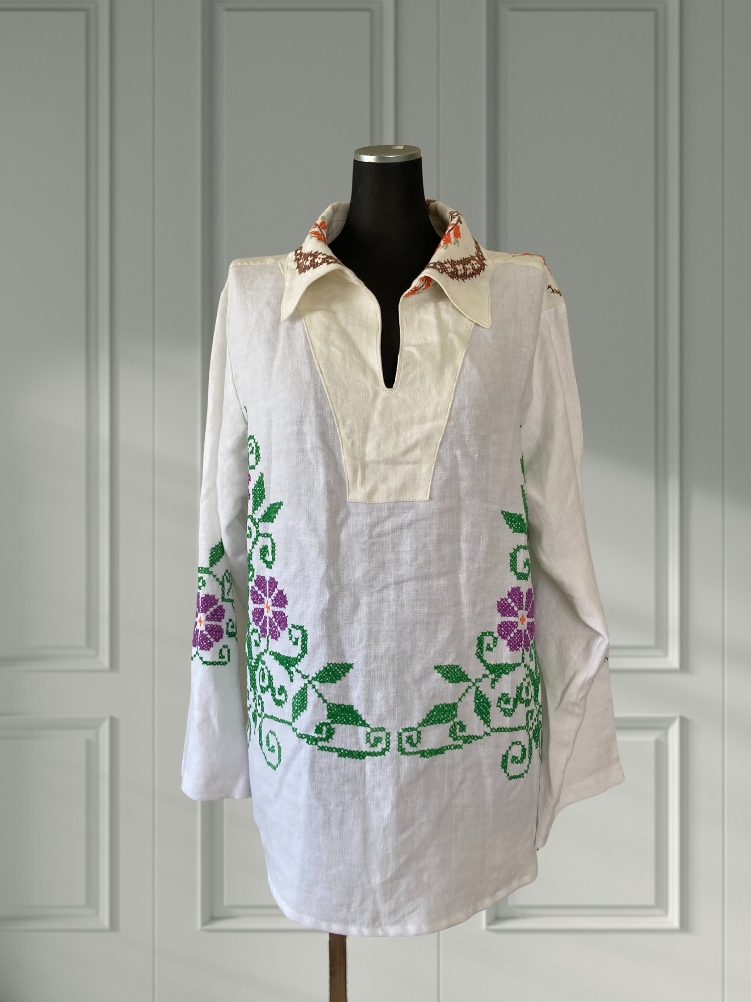ヴィンテージ リネン 刺繍 カフタンシャツ