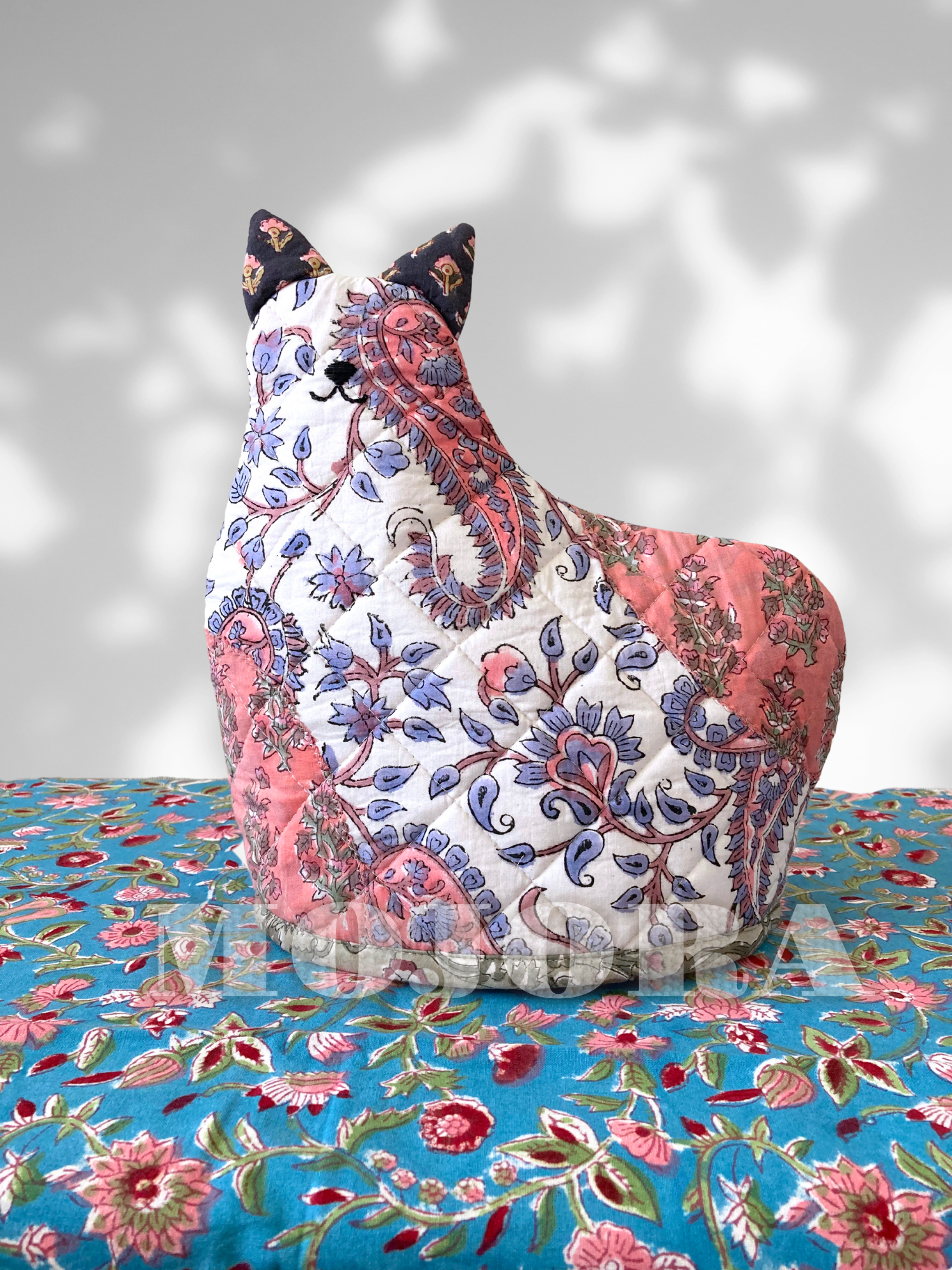 ハンドブロックプリント ネコさん ティーコージー ポットカバー