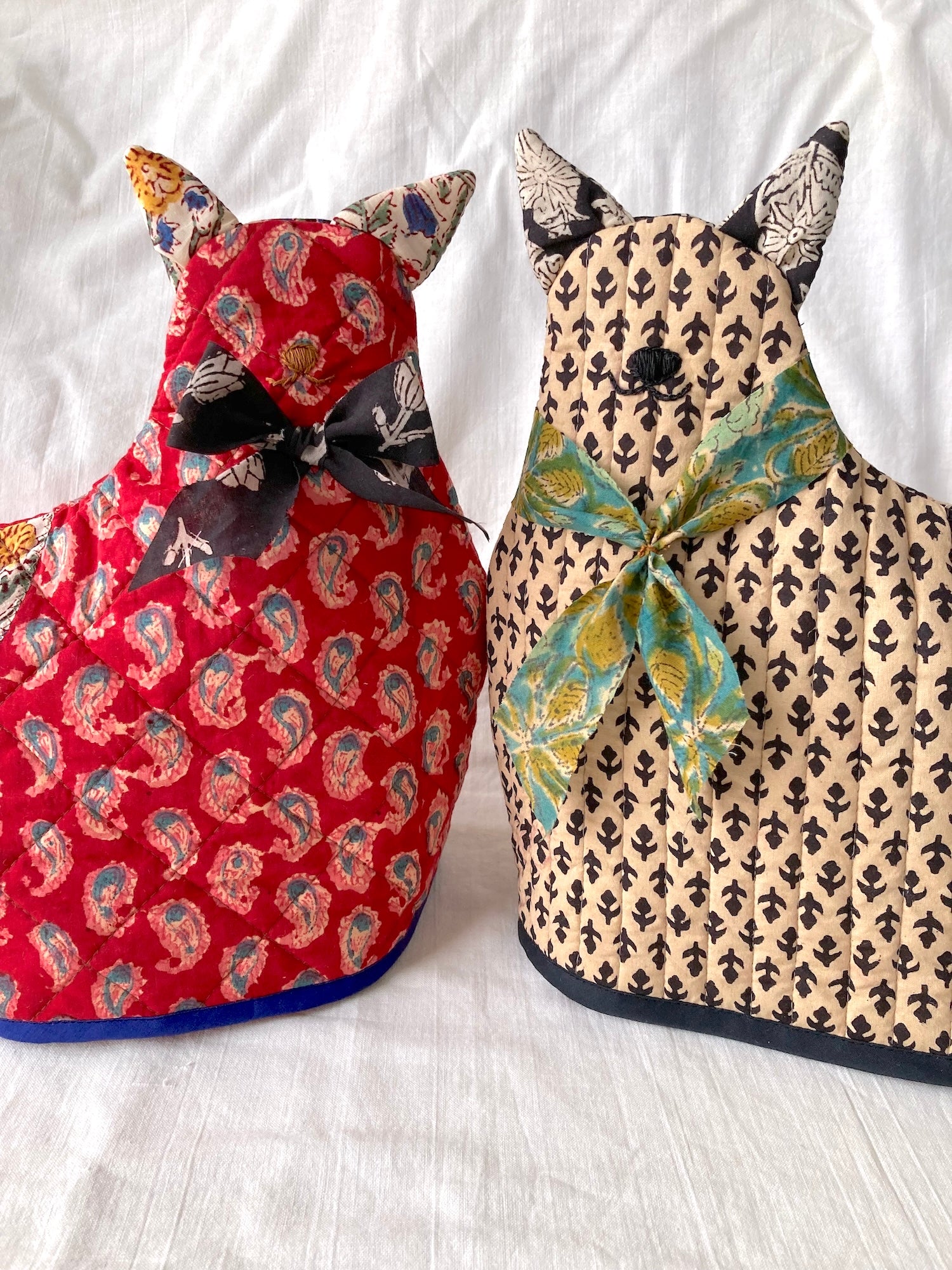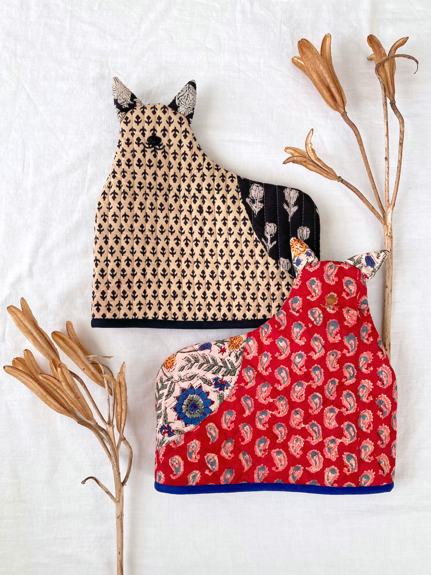 ハンドブロックプリント ネコさん ティーコージー ポットカバー
