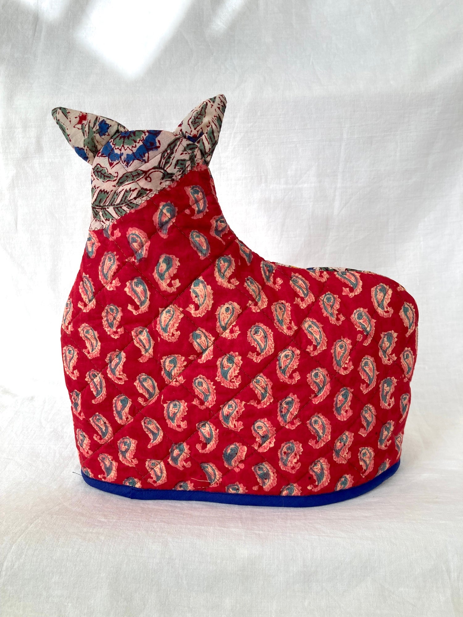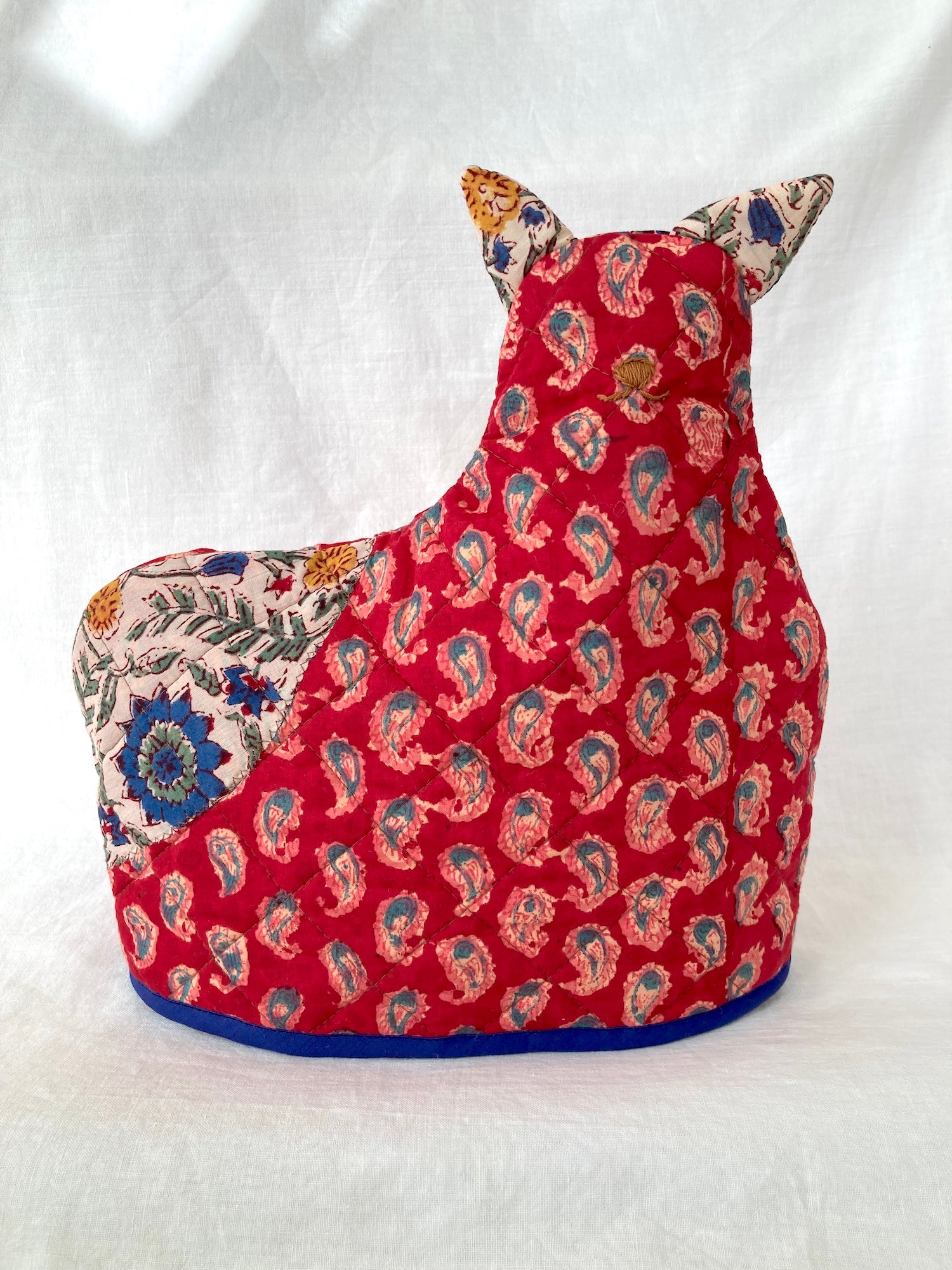 ティーポットを暖かくキープするティーコージー。ティーポットカバーやティーポットウォーマーなど言い方は色々、動物モチーフのデザインが多いのも特徴です。その中でもありそうでなさそうなニャンコ型をチョイスして、良い感じの形になるように作りました。