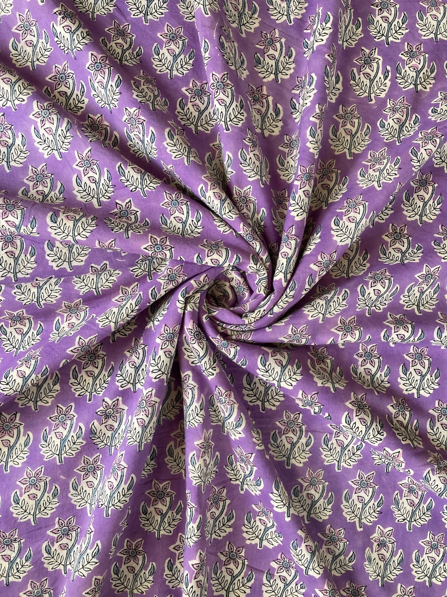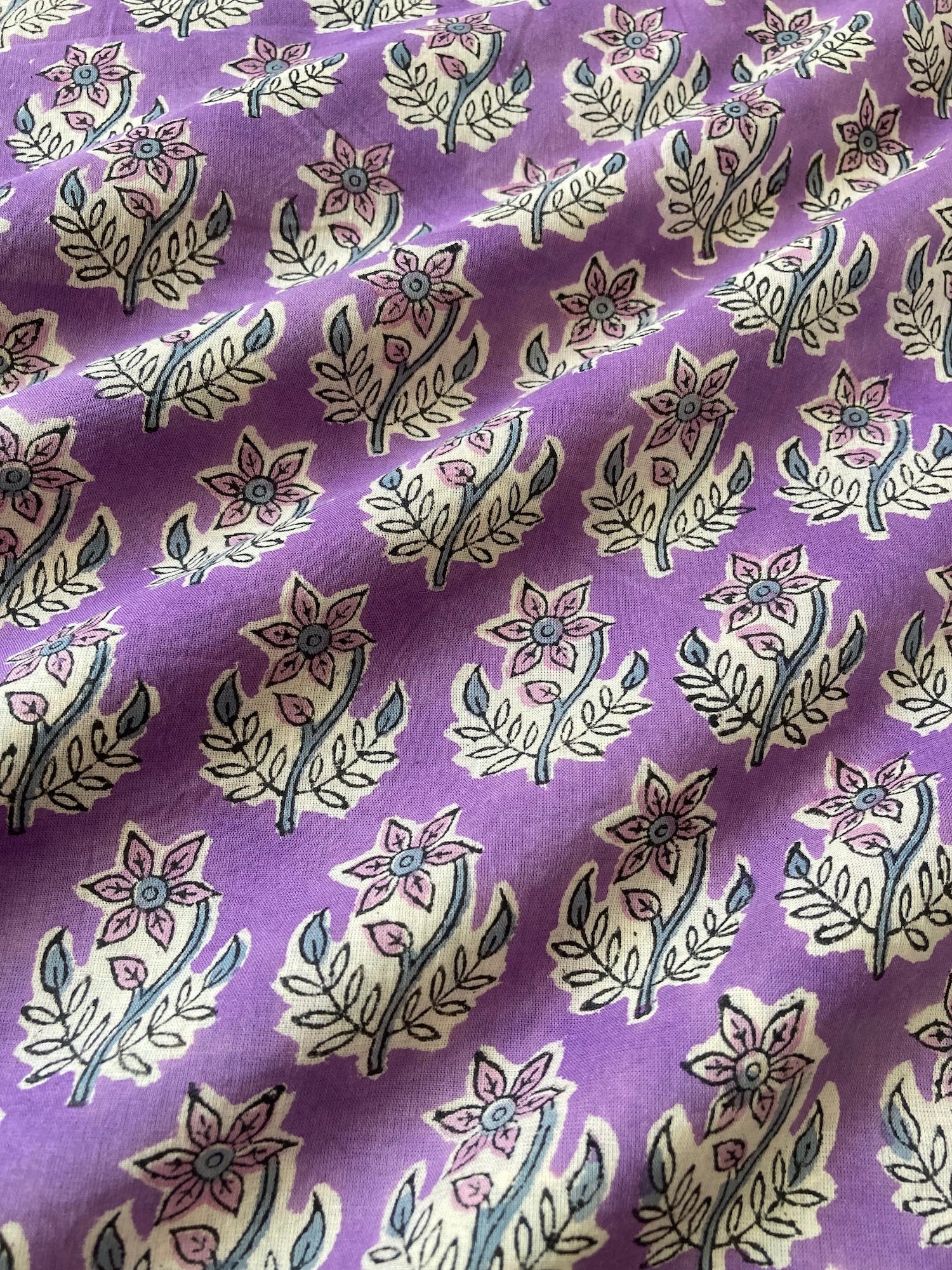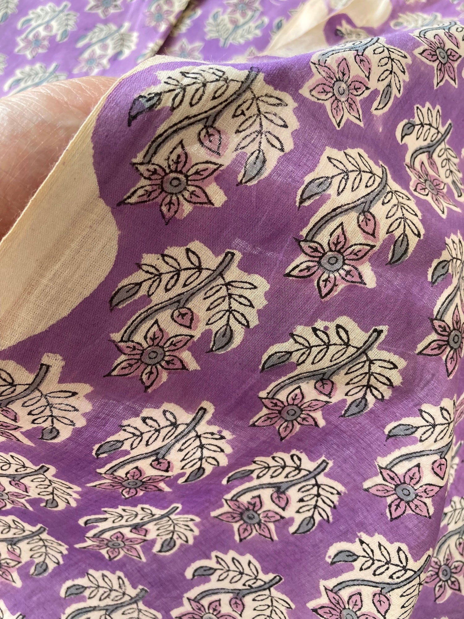 ハンドブロックプリント パープル コットンプリント生地 #264-7