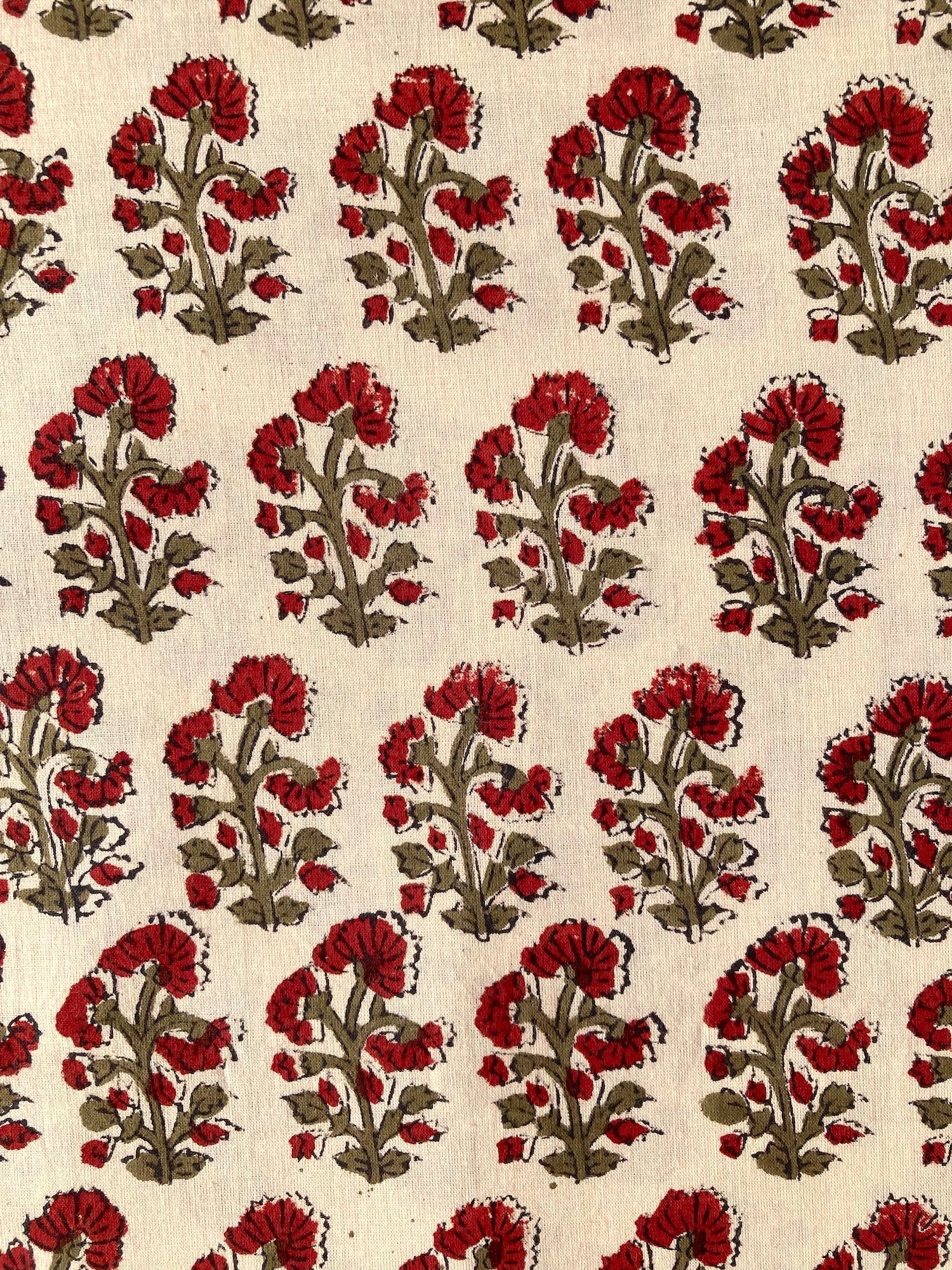 ブロックプリント生地は手作業による製品の為、プリントのずれやインクの汚れ、色むら等がございます。販売前に検品で確認し、問題のない範囲であると判断したものを販売しています。状態を画像でご理解・ご判断頂き、購入検討してください。