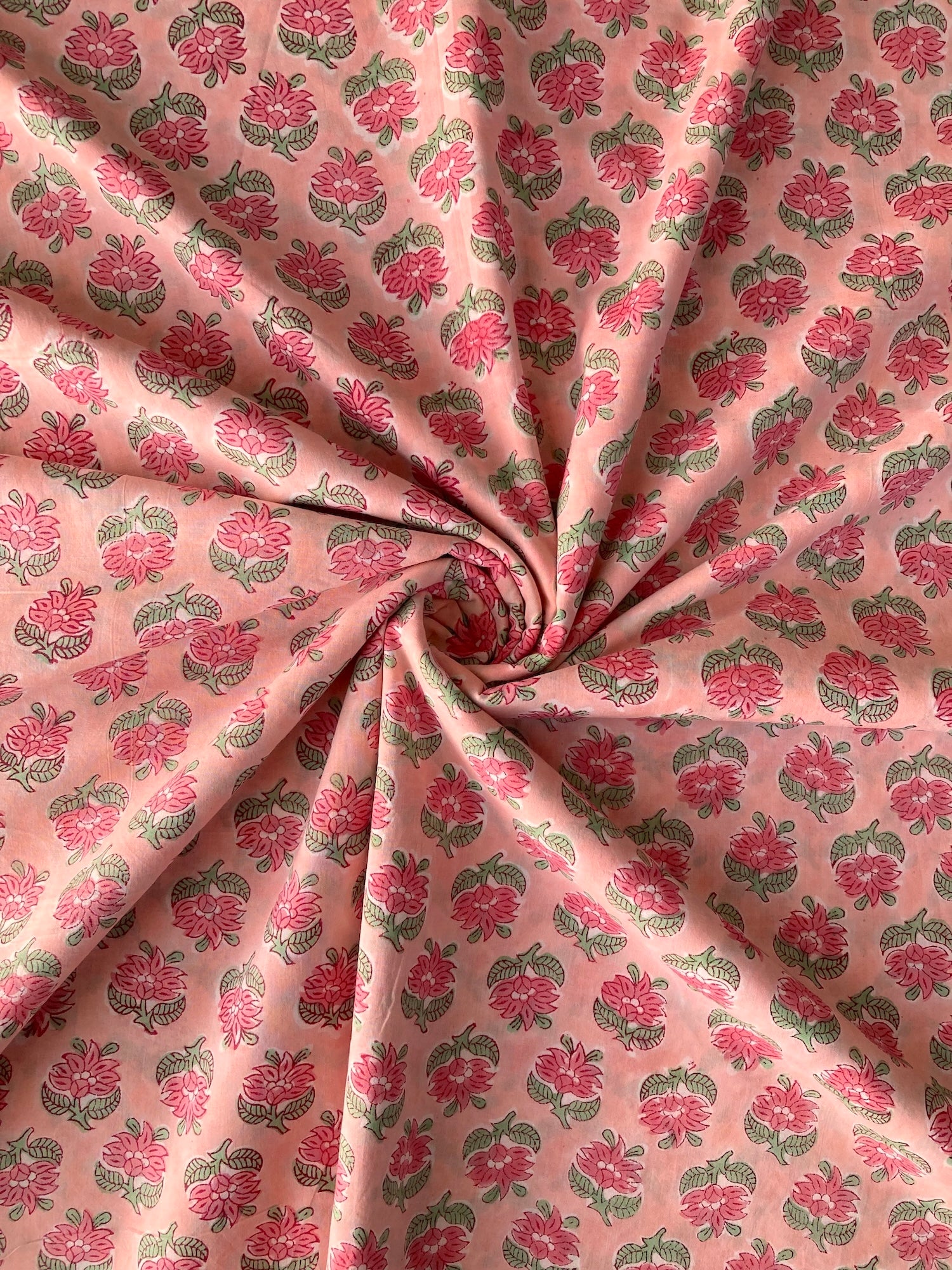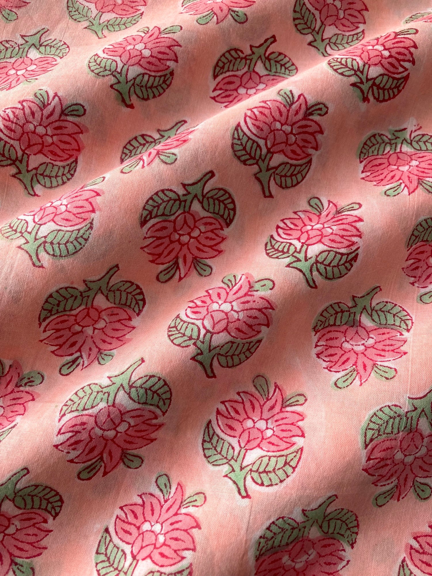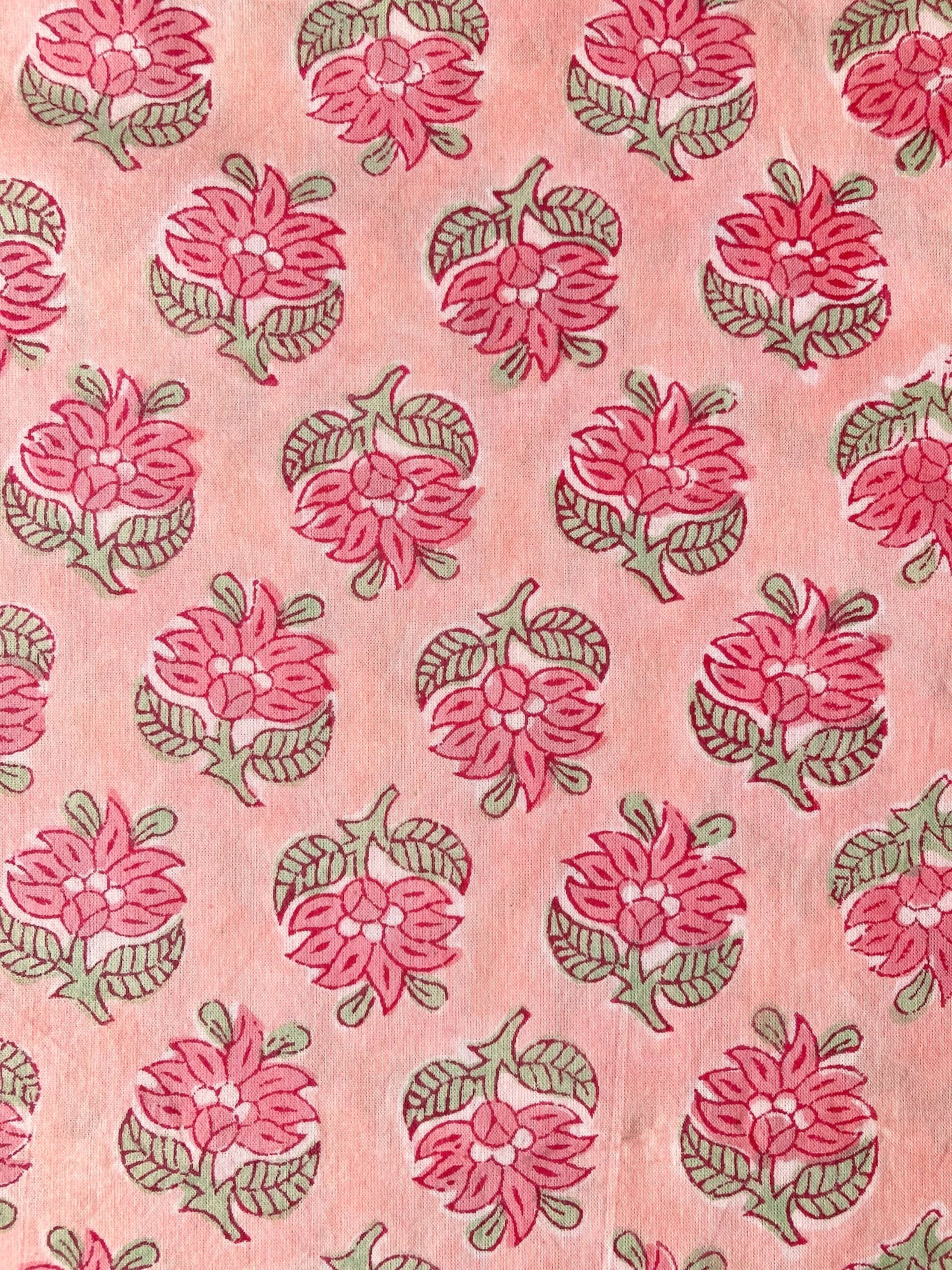ハンドブロックプリント ピーチ ピンク 花柄 コットンプリント生地 #287-7