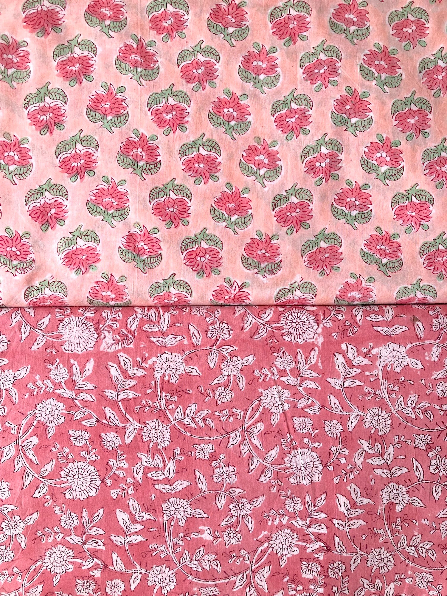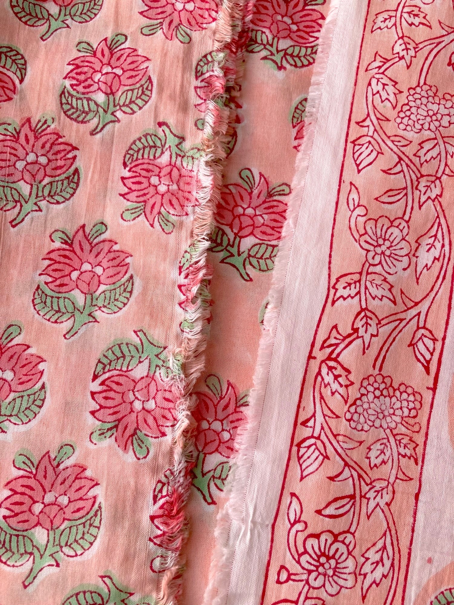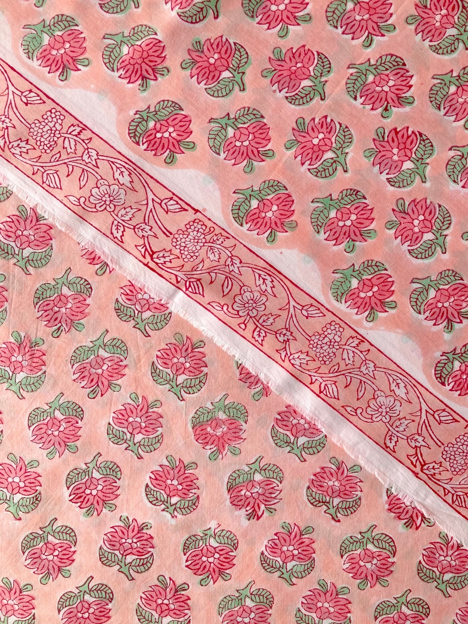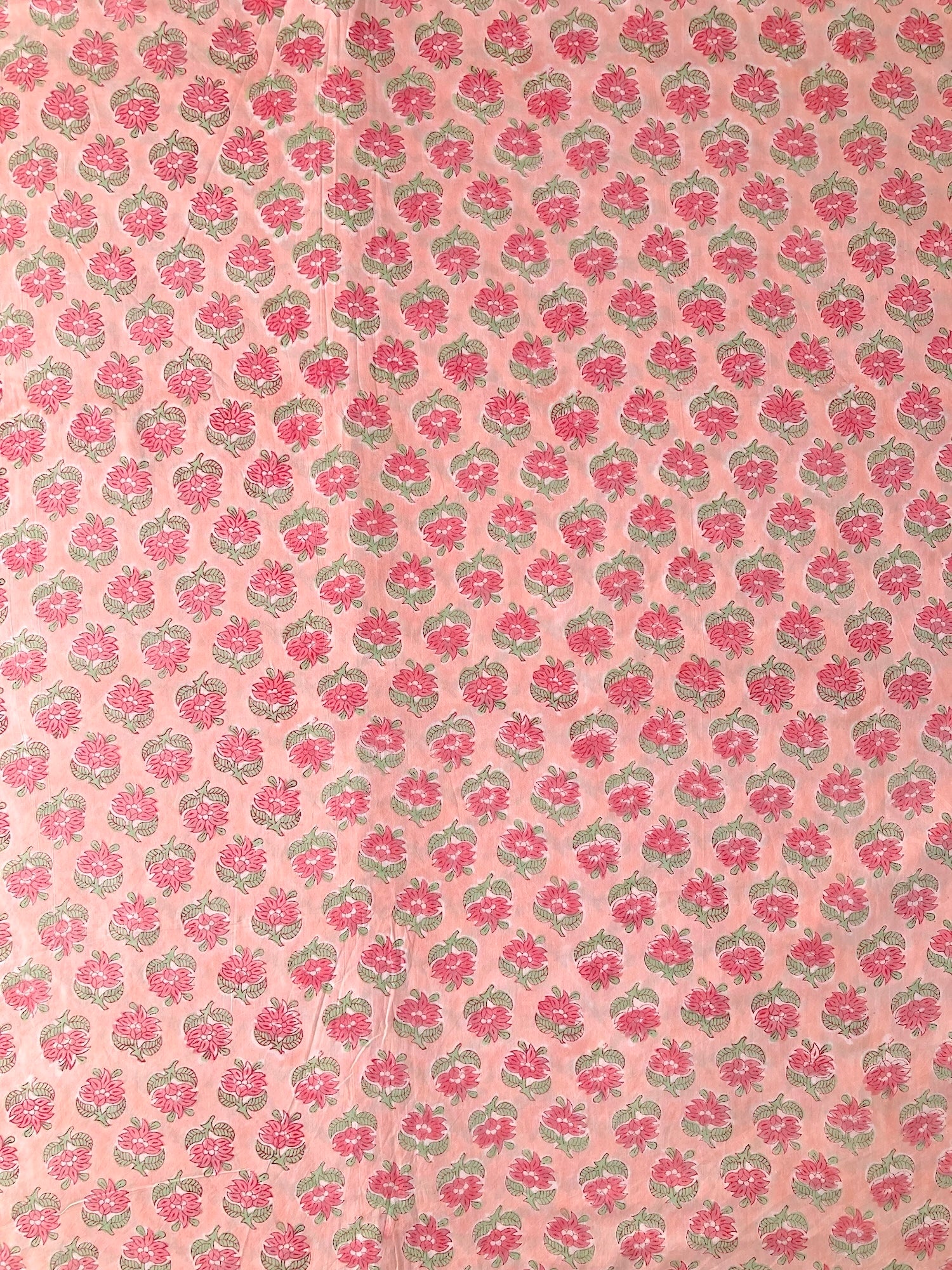 ハンドブロックプリント ピーチ ピンク 花柄 コットンプリント生地 #287-7