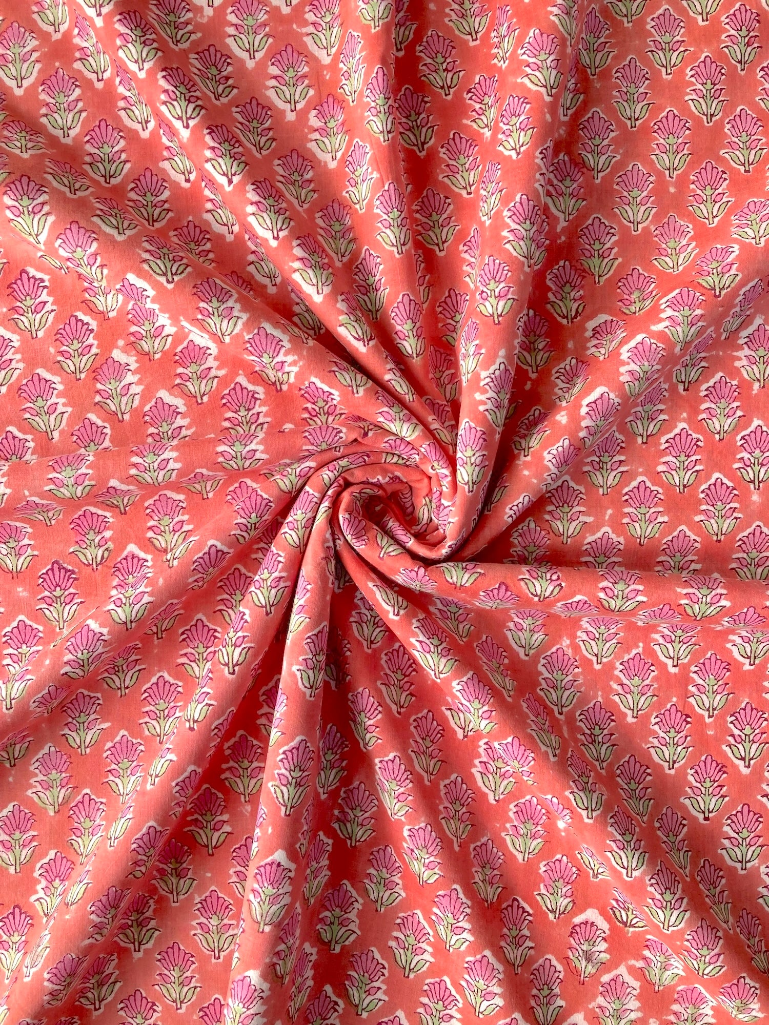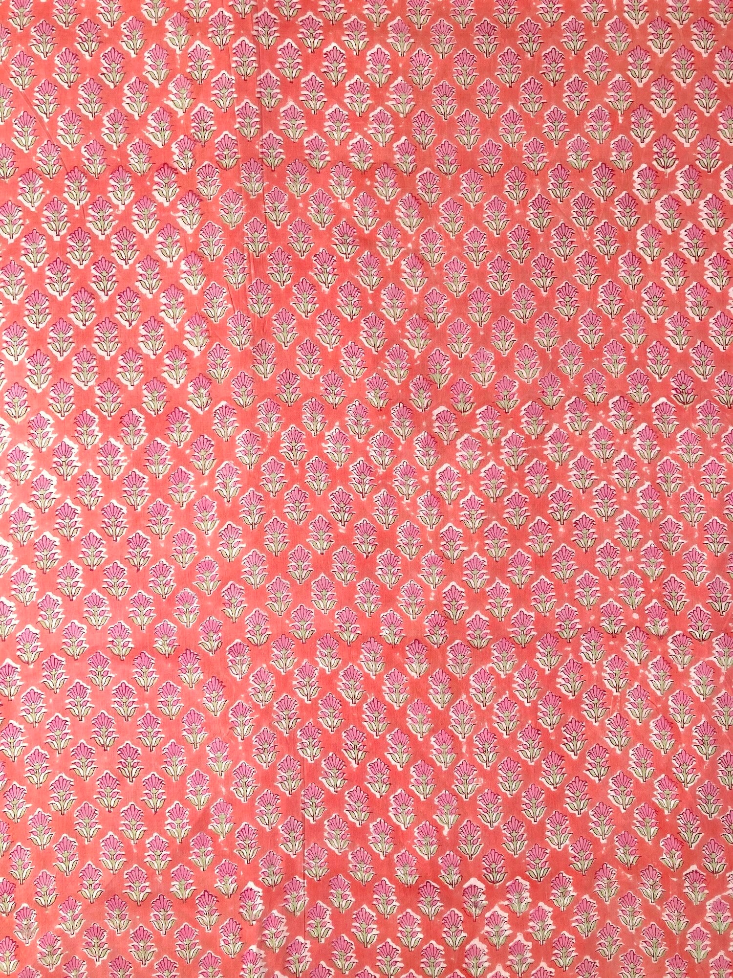 ハンドブロックプリント コーラル 小花柄 コットンプリント生地 #289-17
