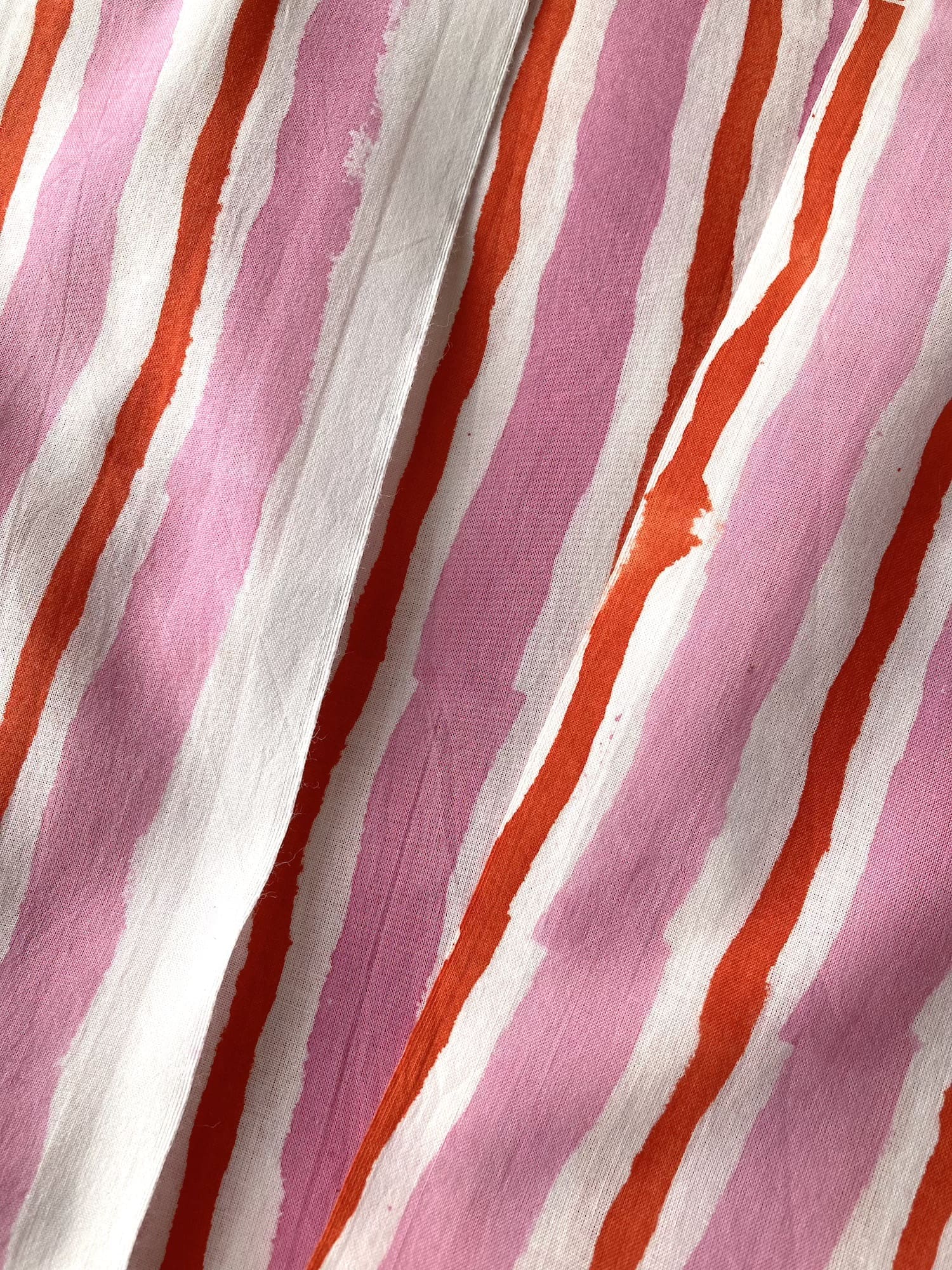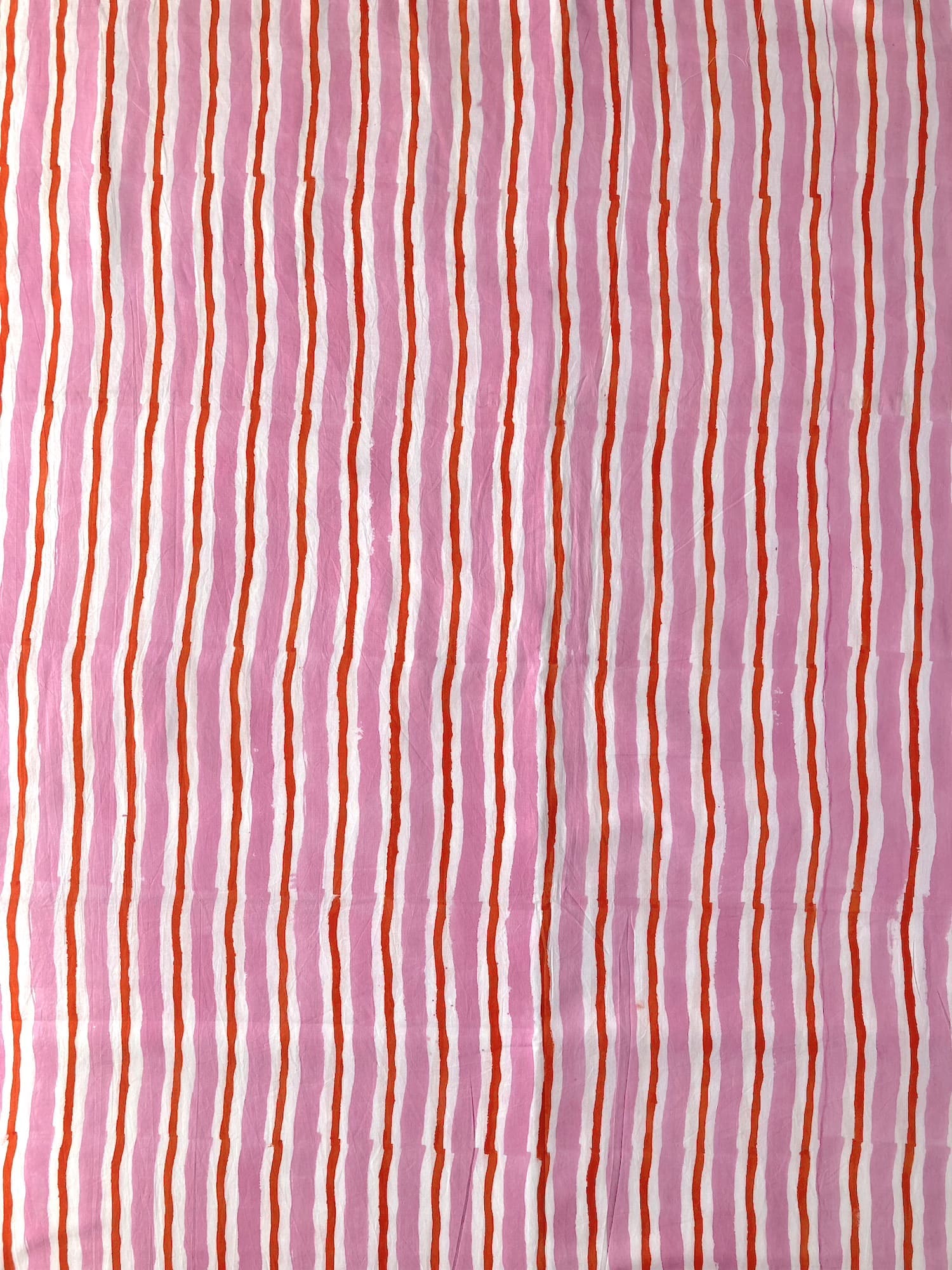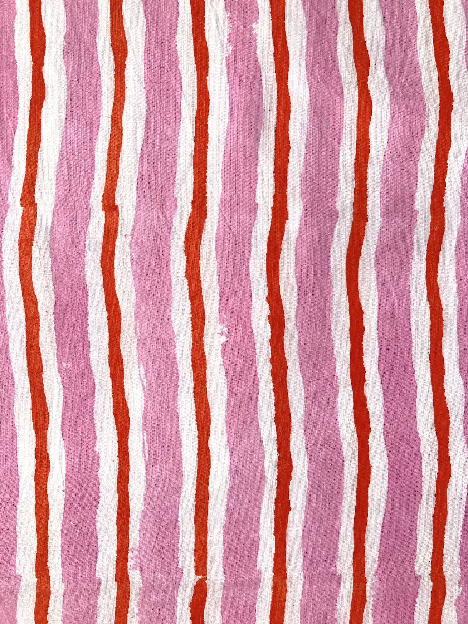 ハンドブロックプリント ピンク ストライプ コットンプリント生地 #289-19