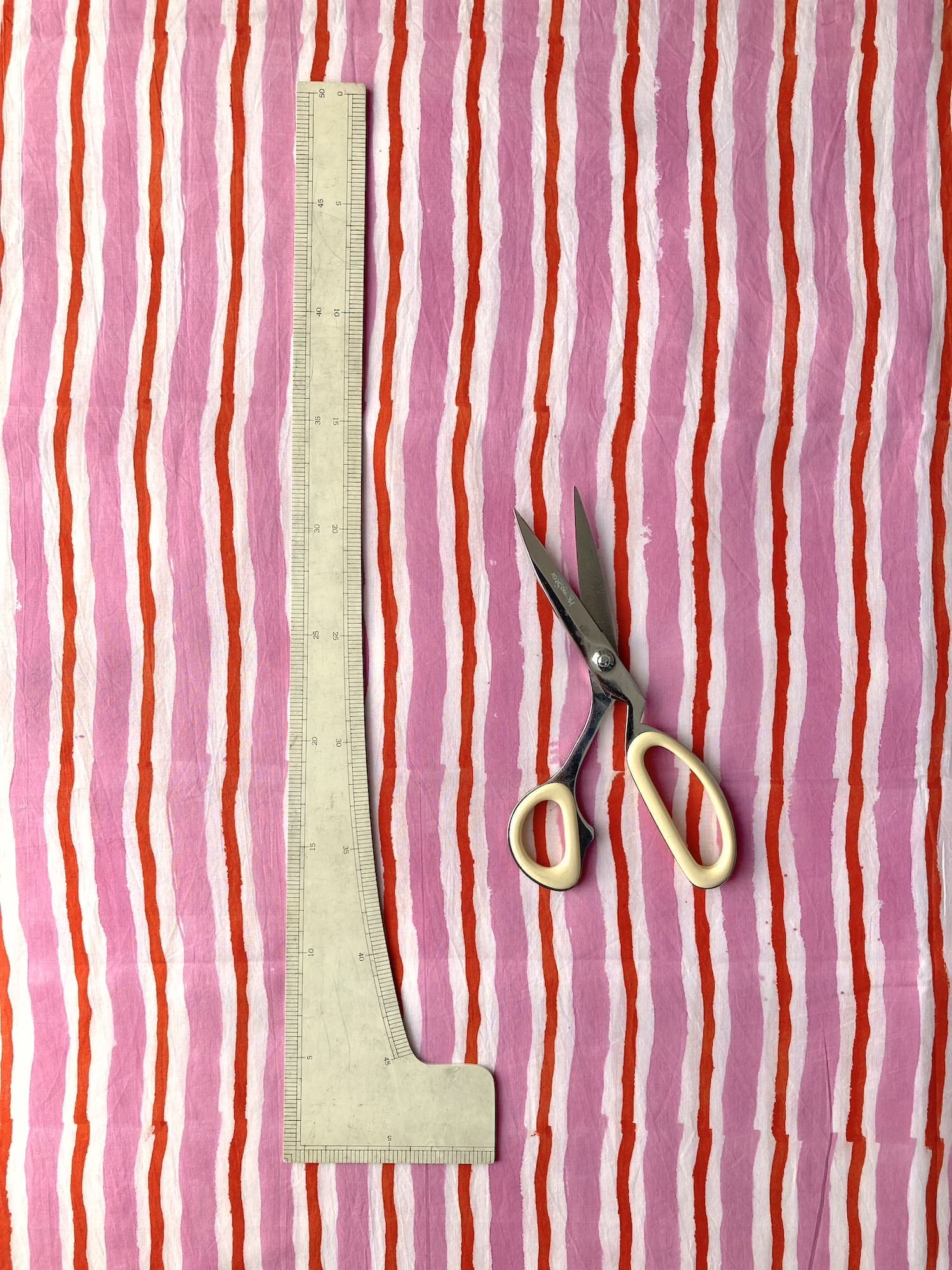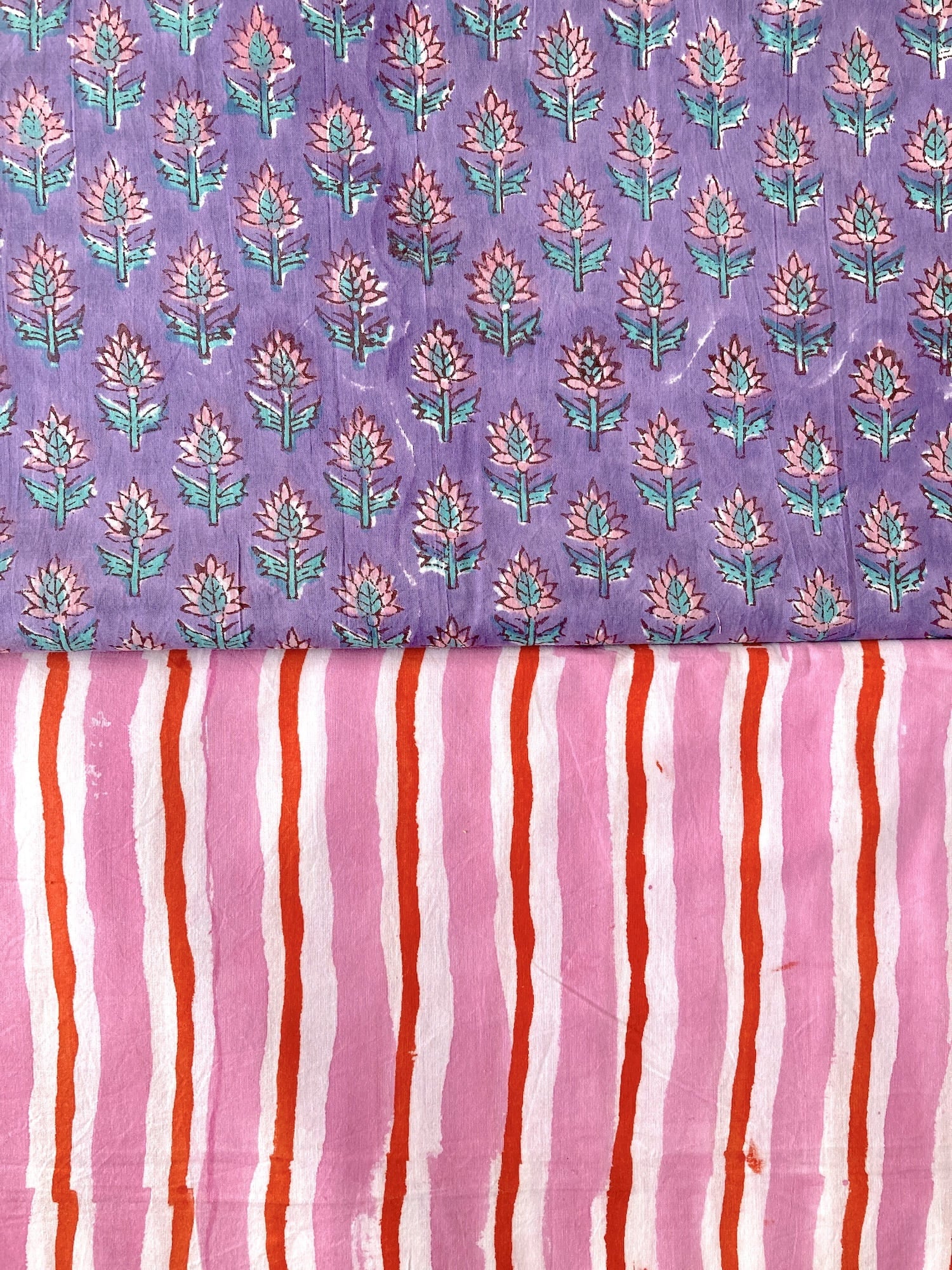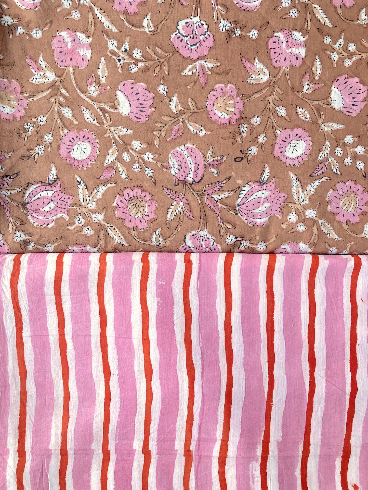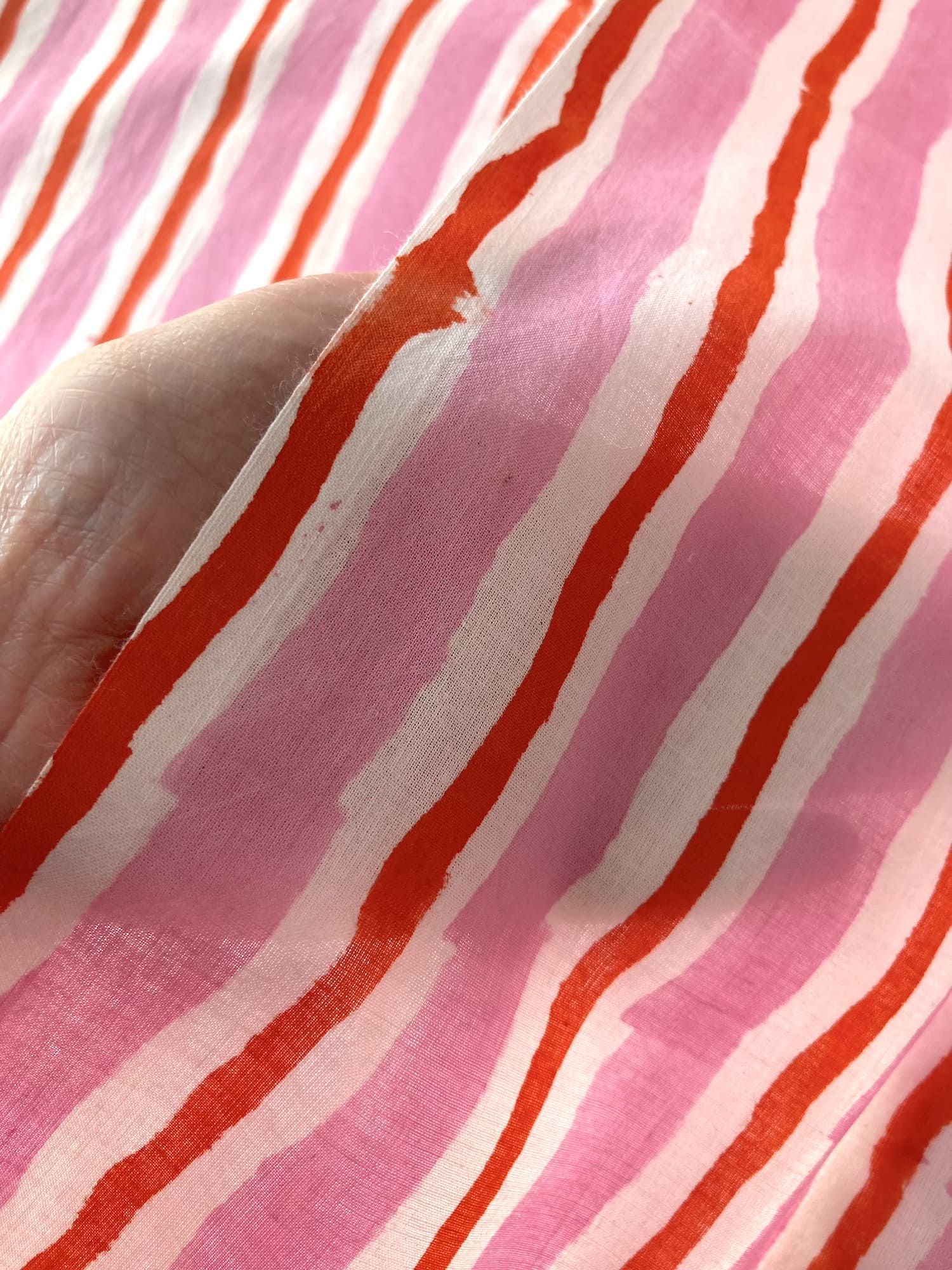 ハンドブロックプリント ピンク ストライプ コットンプリント生地 #289-19