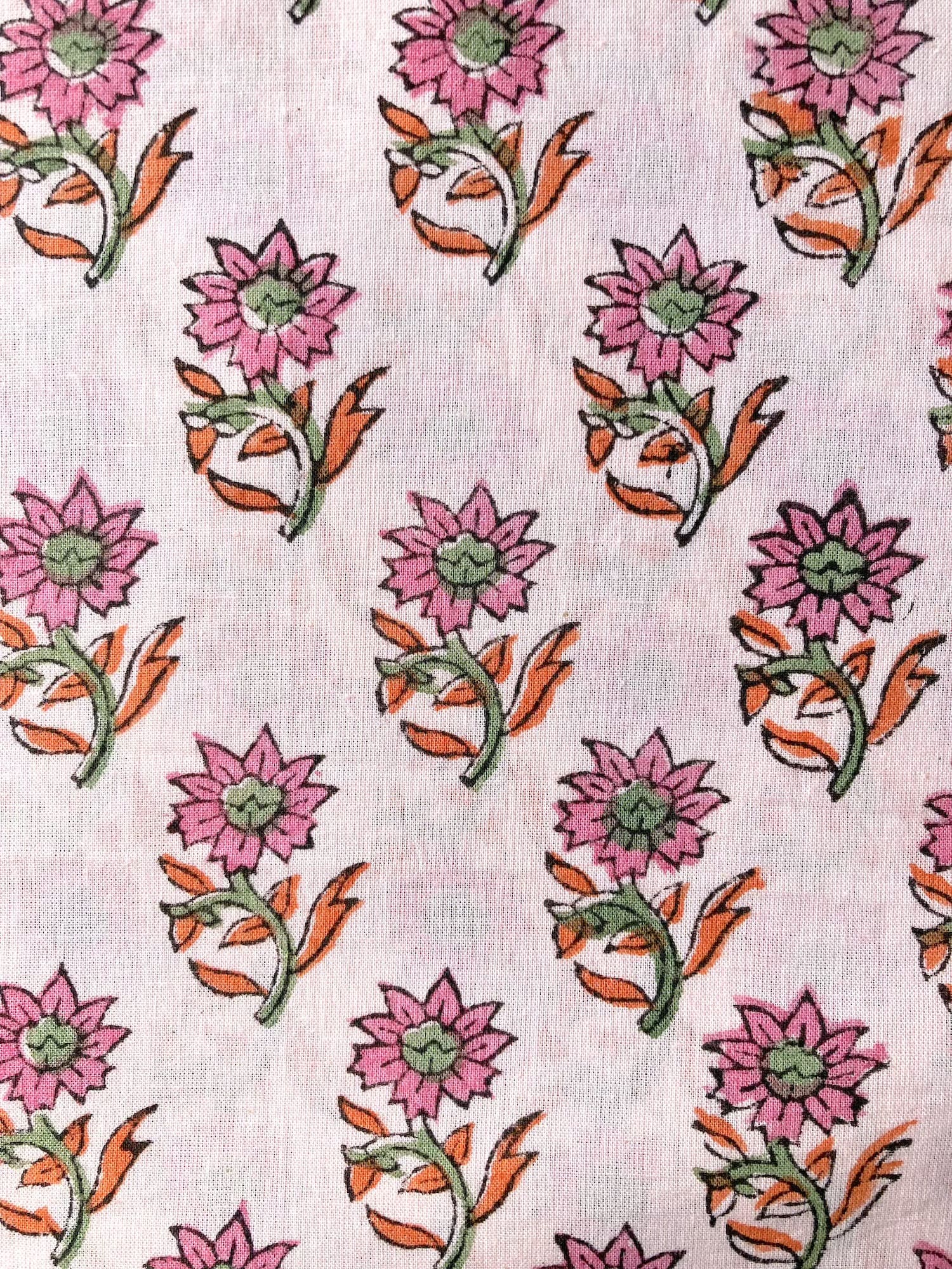 ハンドブロックプリント ピンク 小花柄 コットンプリント生地 #296-2