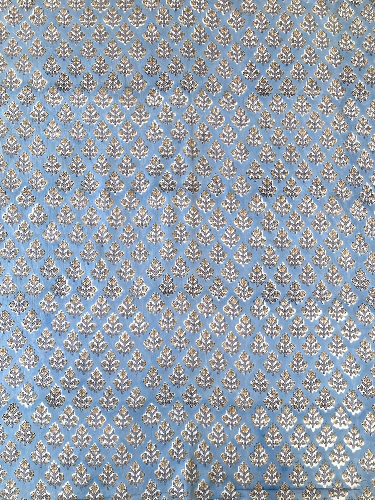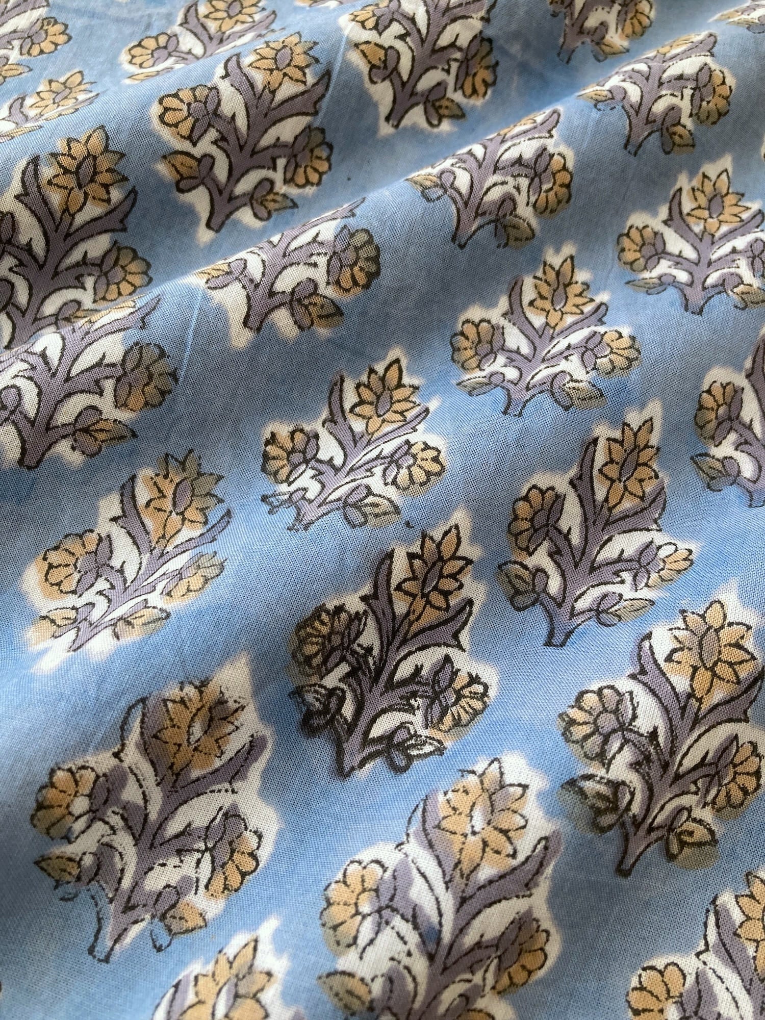 ハンドブロックプリント ライトブルー 小花柄 コットンプリント生地 #296-4